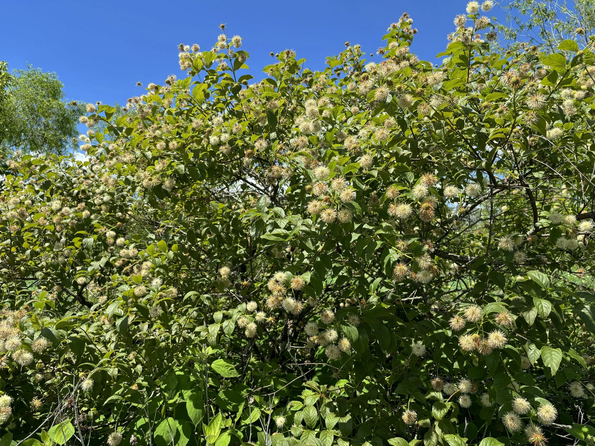 Buttonbush produces a great quantity of nectar and pollen judging by the frequency of density of pollinators using it.