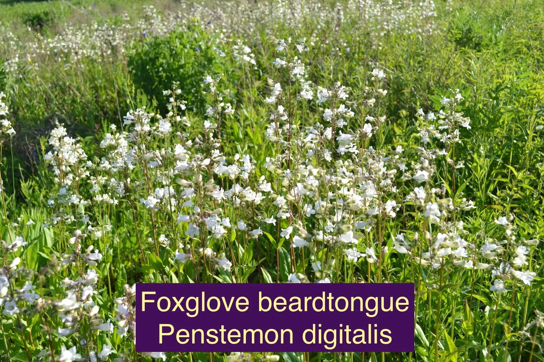 Golden Alexanders Zizia aurea, Ohio Spiderwort Tradescantia ohiensis, Blue Wild Indigo Baptisia australis, White Wild Indigo Baptisia alba, Yarrow Achillea millefolium, Lanceleaf Coreopsis Coreopsis lanceolata, Blephilia cillata - Downy Wood Mint, Foxglove Beardtongue (Penstemon digitalis), Blackeyed Susan Rudbeckia hirta, Butterfly Milkweed Asclepias tuberosa, Common Milkweed Asclepias syriaca