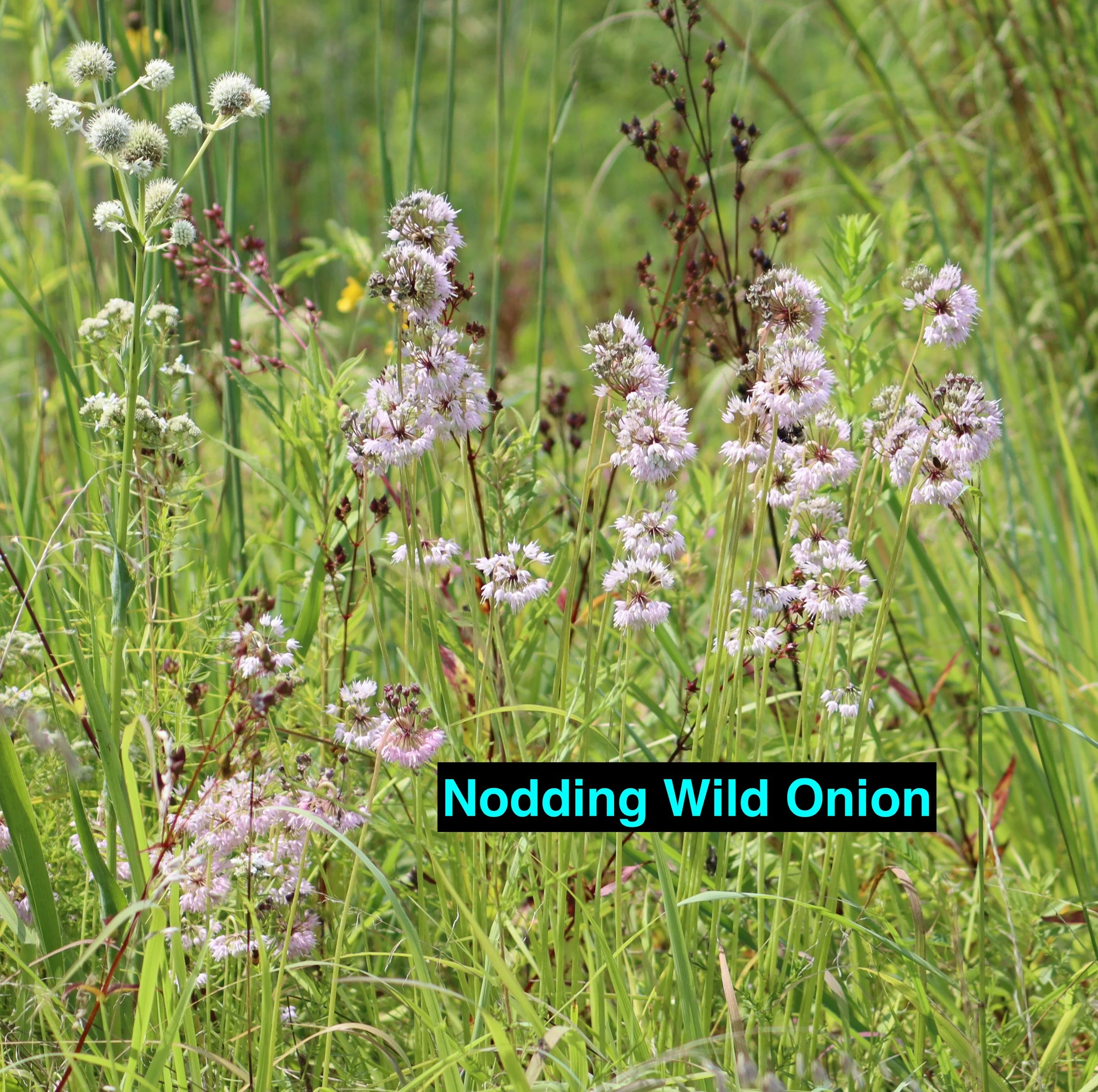 Wild Bergamot Monarda fistulosa, Narrowleaf Mountainmint Pycnanthemum tenuifolium, Grey Headed Coneflower Ratibida pinnata, Purple Coneflower Echinacea purpurea, Oxeye Sunflower Heliopsis helianthoides, Culver's Root Veronicastrum virginicum, Maryland Senna Senna marilandica, Marsh Blazing Star Liatris spicata, Panicled Trefoil Desmodium paniculatum, Canada Milkvetch Astragulus canadensis, Spotted Bee Balm - Monarda punctata, Rattlesnake Master Eryngium yuccifolium,